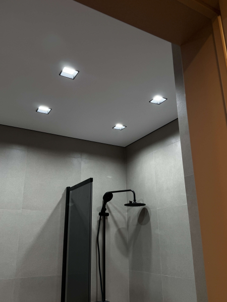 Идеальный потолок с ровной поверхностью, выполненный из качественного европейского полотна, без запаха.